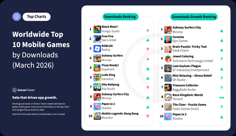 No. 1 Worldwide Mobile Games Download Rankings for March 2026